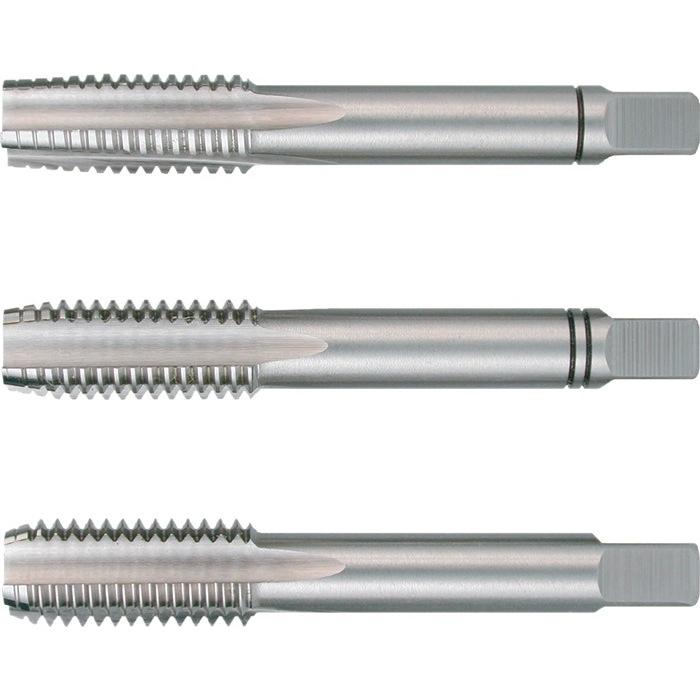 RUKO Juego de machos manuales DIN 352 3 piezas M 18x Paso 2 mm HSS brillante, recto, desbaste ranurado/segundo/fondo. Toca Tol. ISO26H