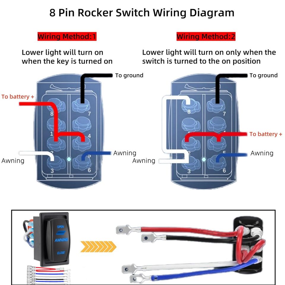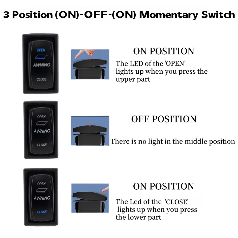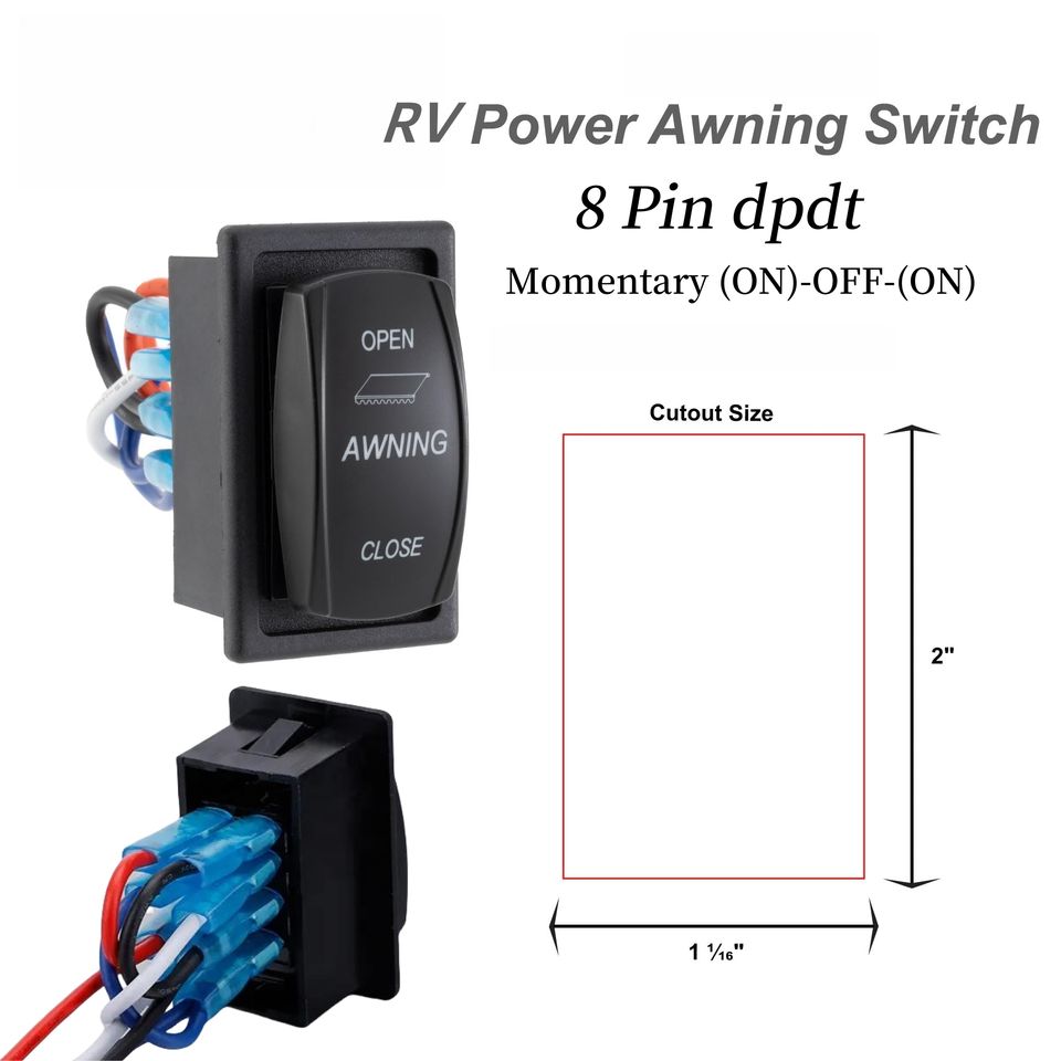Interruptor basculante para toldo de RV con soporte de carcasa, 3 posiciones (ENCENDIDO)-APAGADO-(ENCENDIDO), interruptor momentáneo para autocaravana, 12V/24V, interruptor de palanca de 8 pines