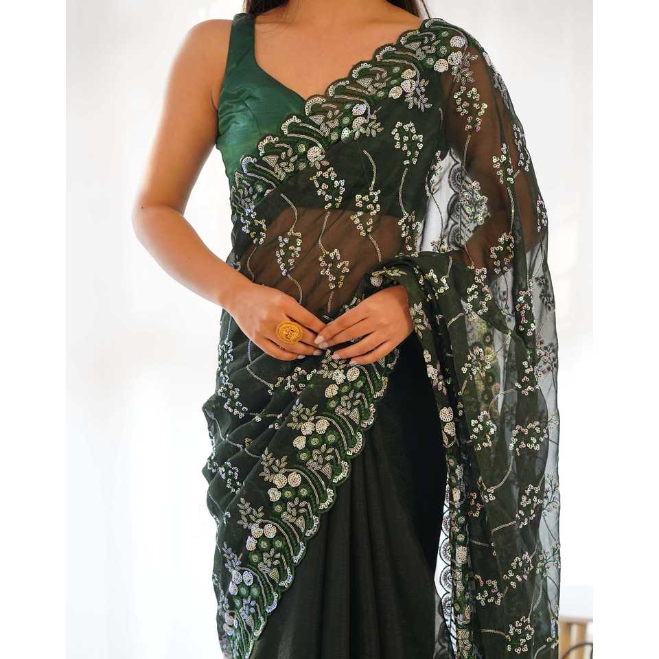 RV Creation Designer Sequence Bordado Work Party Wear Saree Green Tela elegante para ocasiones especiales