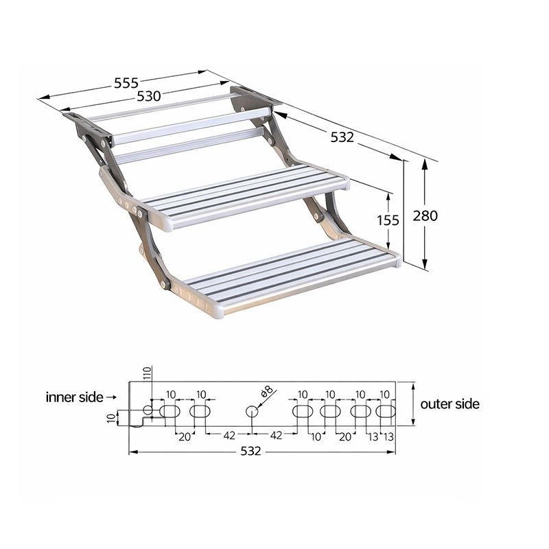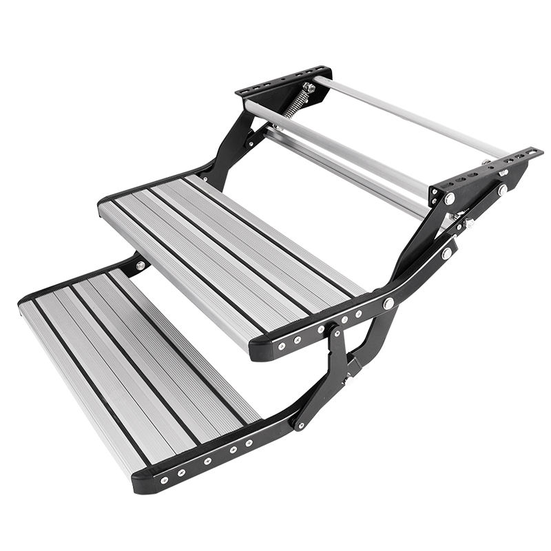 Escalera Manual Plegable y Retráctil para RV, Escalón de Entrada de Aluminio de 2 Peldaños