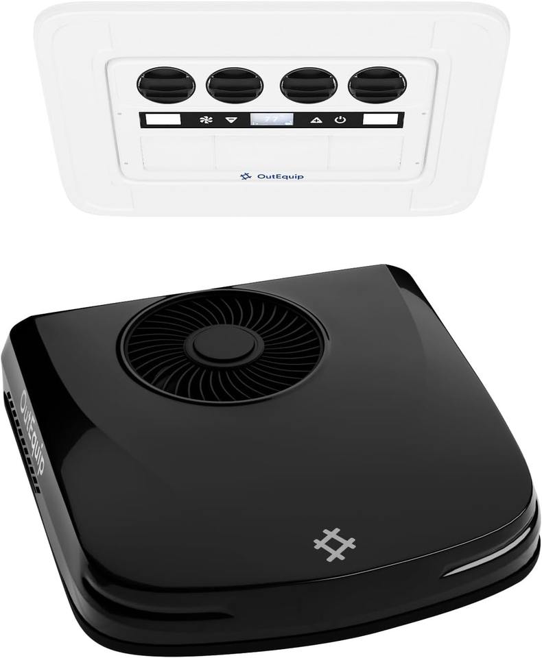 Aire Acondicionado para Techo de Autocaravana con Calefactor, 10,000 BTU, Bajo Perfil, DC, Silencioso, con Batería, para Camper, Furgoneta