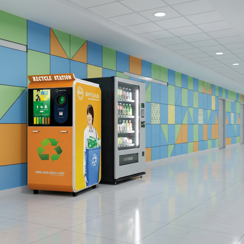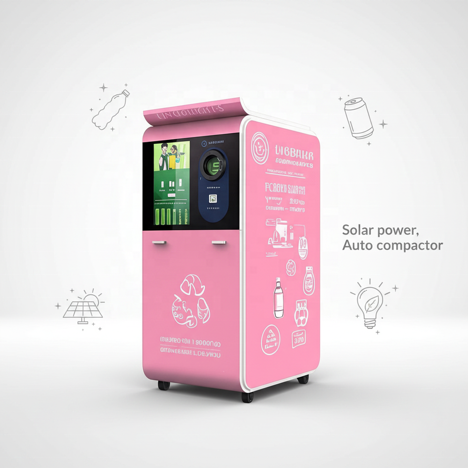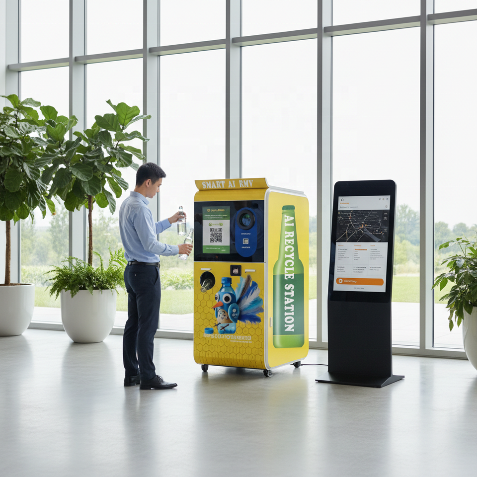 Sistema de reciclaje inteligente RVM | Máquina expendedora inversa impulsada por AI con programa de devolución de bebidas