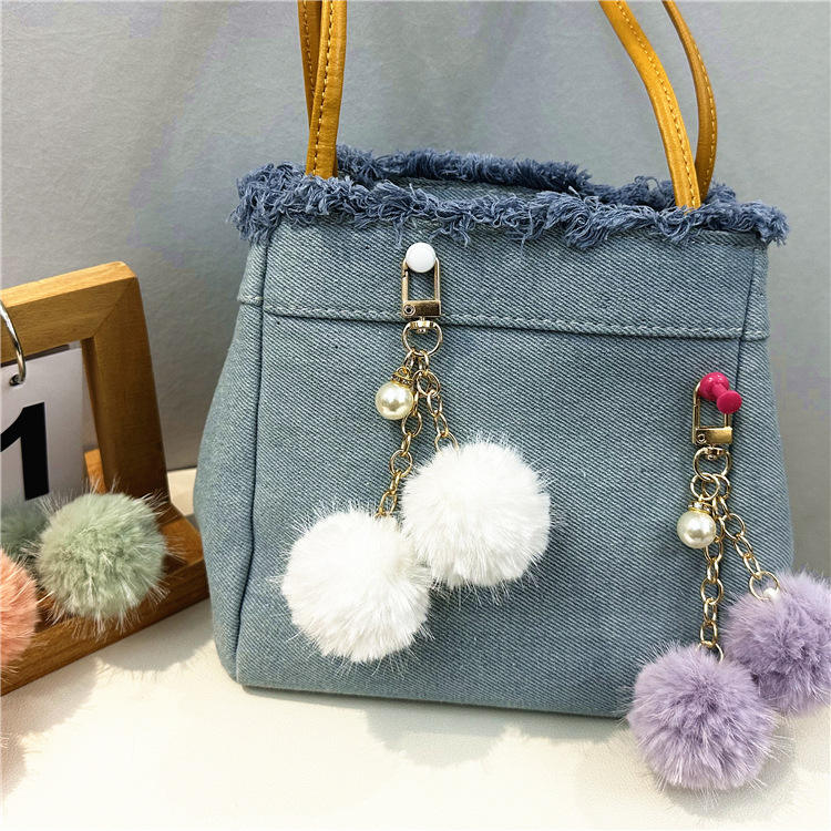 Llavero ligero de juguete de peluche de conejo esponjoso Kawaii piel sintética portátil chico regalo encanto mochila coche llave colgante con caja de regalo