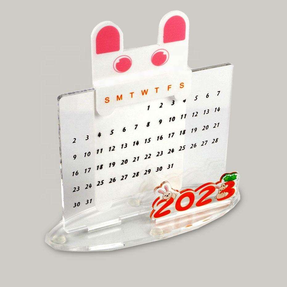 Calendario acrílico transparente en forma de conejo, calendario de escritorio para nevera, regalo de decoración, calendario transparente de escritorio perpetuo