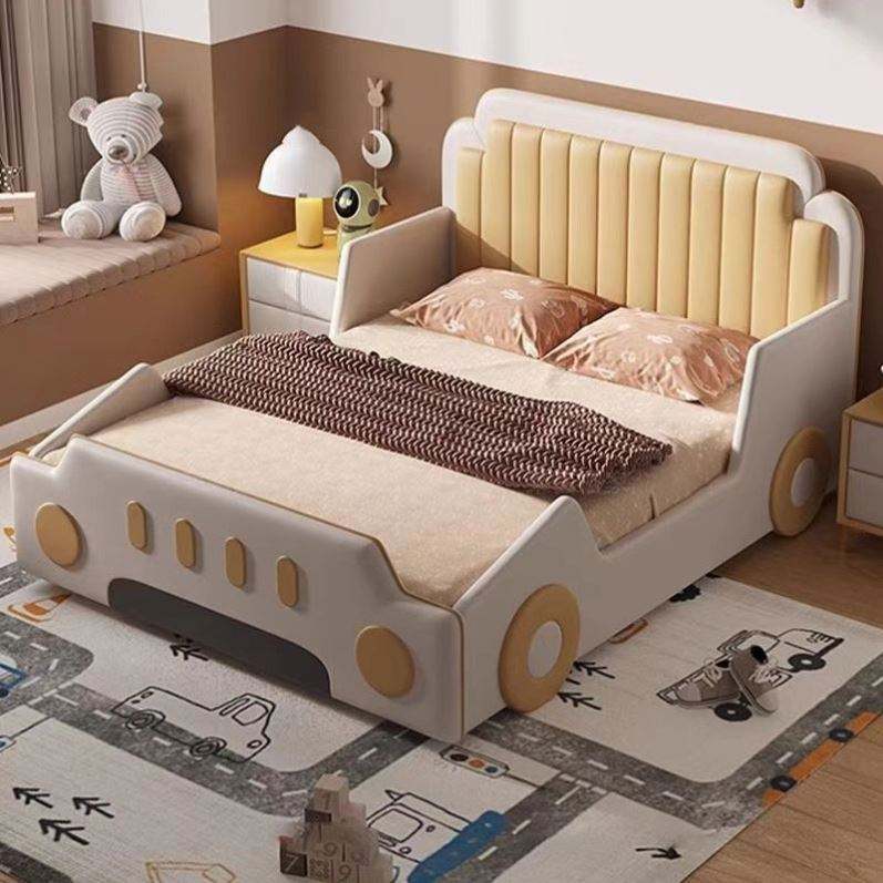 Cama Infantil de Madera Maciza con Diseño de Auto de Carreras, Barandillas de Seguridad, Almacenamiento Creativo, Diseño de Dibujos Animados, Estilo Moderno y Minimalista, Tamaño Completo, Cómoda para Dormitorio de Niños