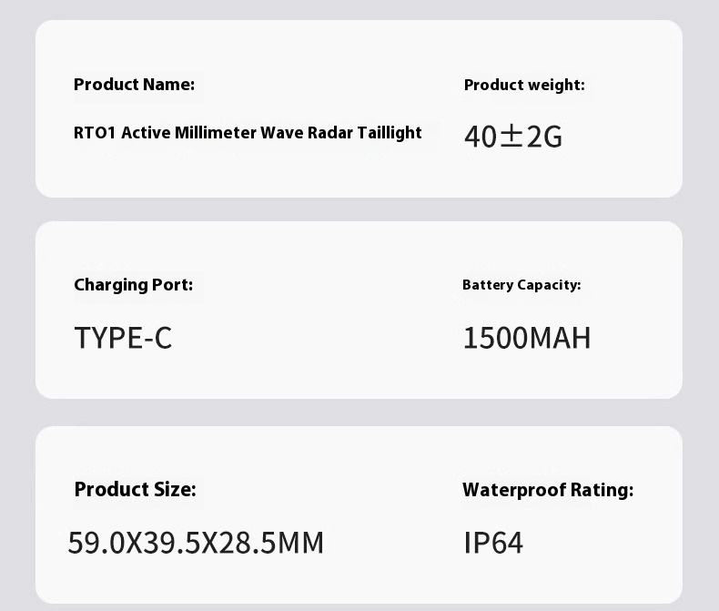 Product name:RT02 radar sensing intelligent bicycle taillight