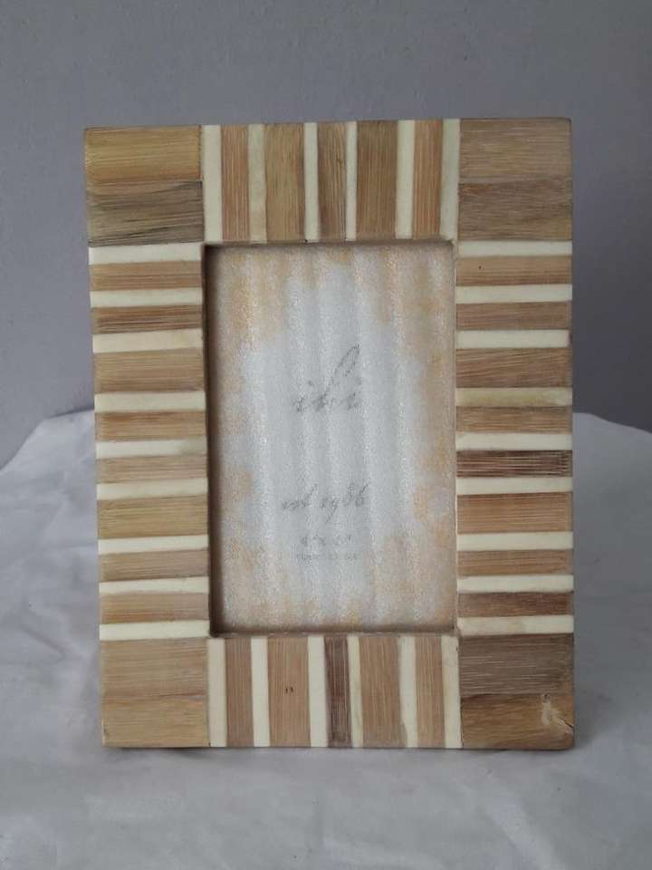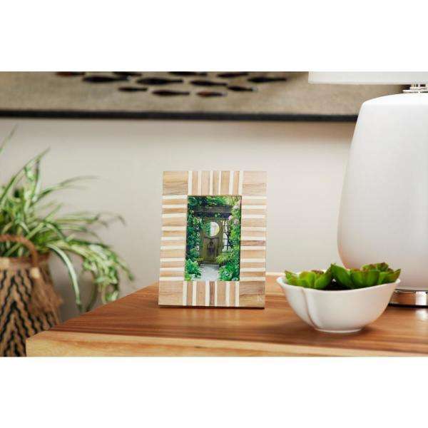 Marco de Fotos Rectangular Radiance Beige Crema con Rayas, Resina y Madera con Acabado Brillante Natural, Tamaño 4x6 Personalizable, Bambú, Plástico, Imán Cuadrado