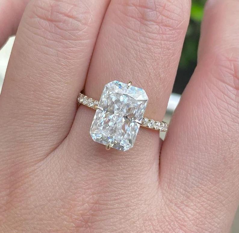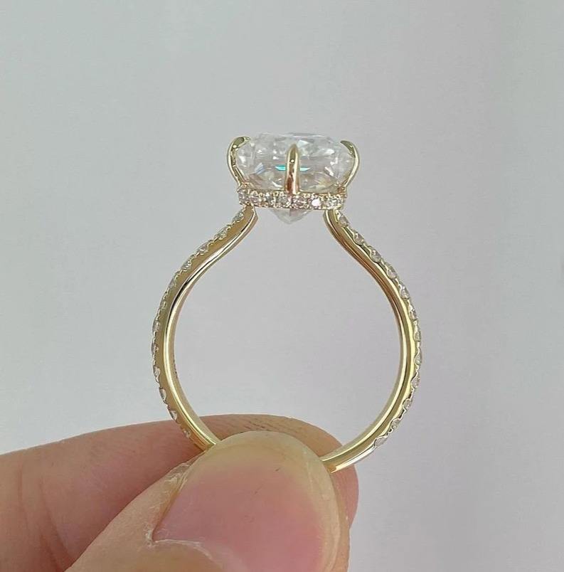 Anillo de diamante cultivado en laboratorio de Color D E F de corte radiante hermoso anillo de boda de Halo oculto de oro amarillo de 14 K regalo para su anillo personalizado