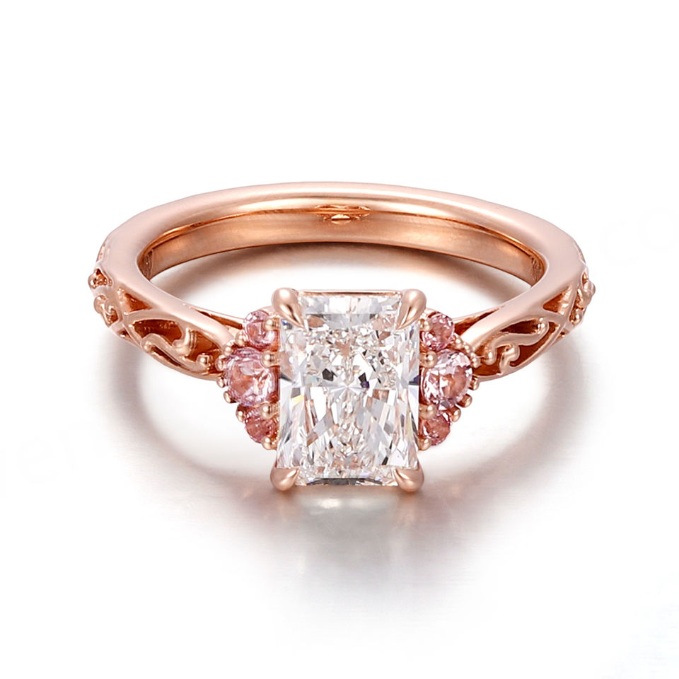 Anillo de Compromiso de Oro Rosa de 18k y 14k con Diamante Cultivado en Laboratorio con Corte Radiante DEF, Joyería Fina Hecha a Mano para Mujer, Joyería de Oro Sólido