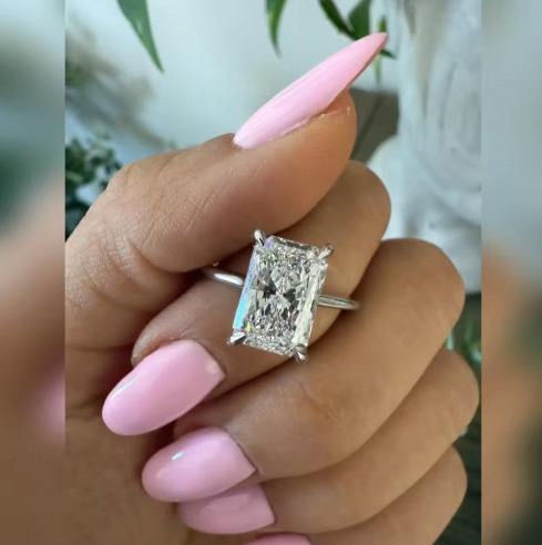 Anillo de Diamante Cultivado en Laboratorio con Corte Radiante para Mujer, Joyería de Oro de Lujo para Boda, Compromiso, Aniversario, Regalo en Oro Blanco de 9K, 14K, 18K