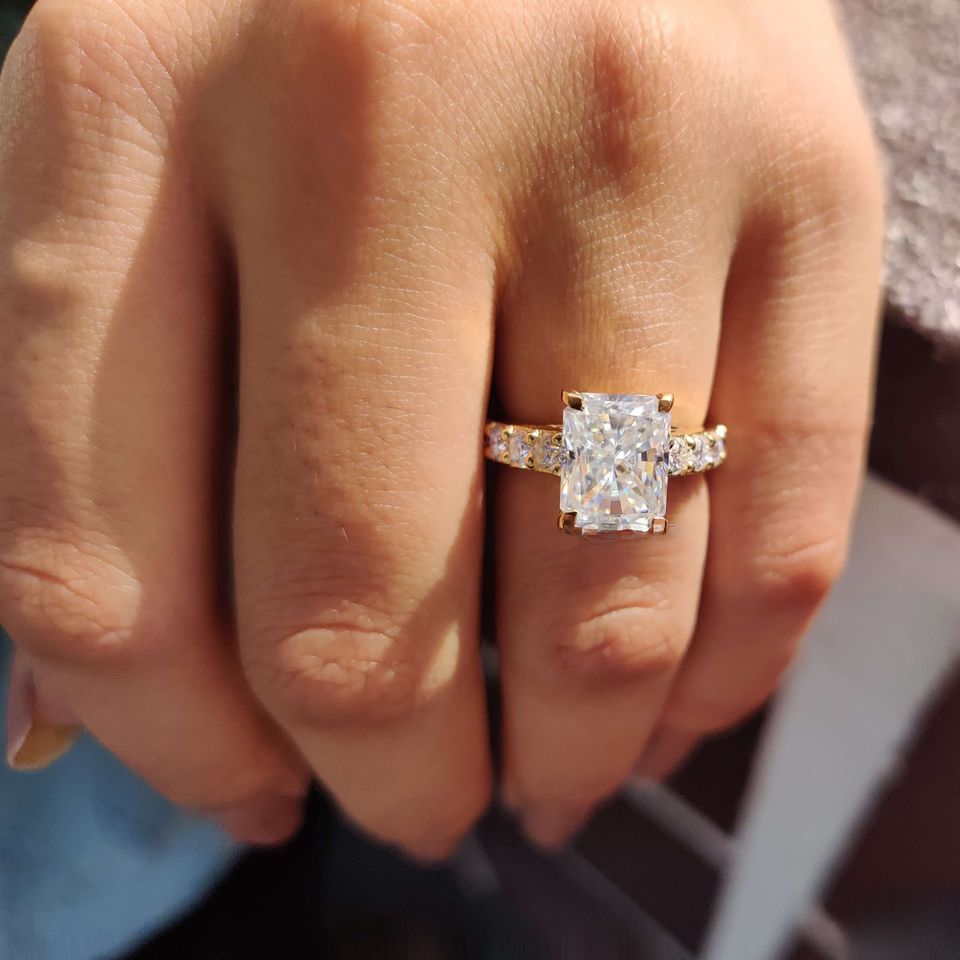 Anillo de banda de solitario de diamante cultivado en laboratorio de corte radiante para mujer Plata de Ley 925 con certificación IGI para boda o fiesta