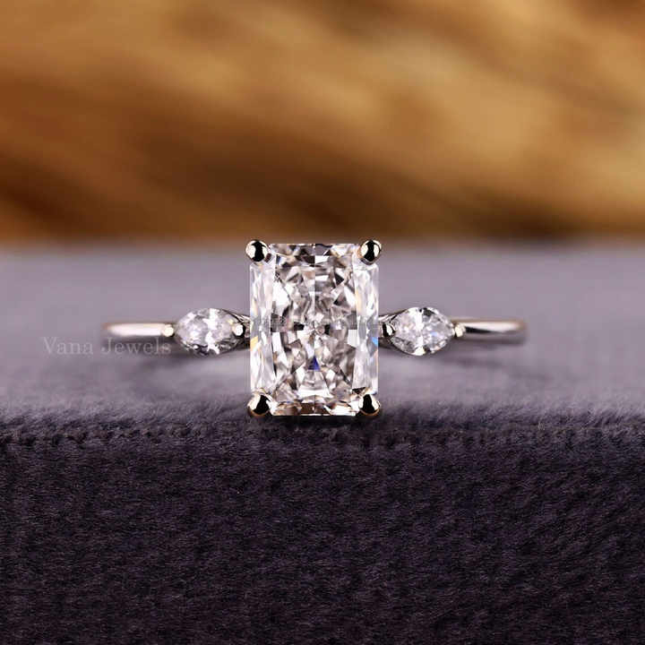 Radiant Cut Lab Grown Diamond Anillo de compromiso de tres piedras Side Marquise Diamond IGI Certified Platinum Wedding Band White Trendy
