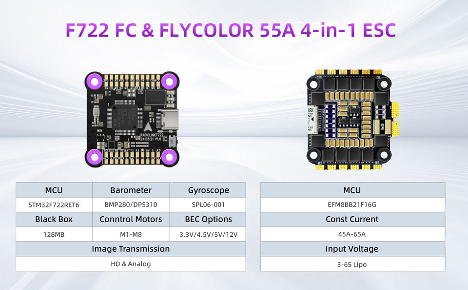 Controlador de vuelo de carreras Radiolink F722 con 4 en 1 55A ESC Stack Fly Betaflight Flying Tower UAV para Dron FPV