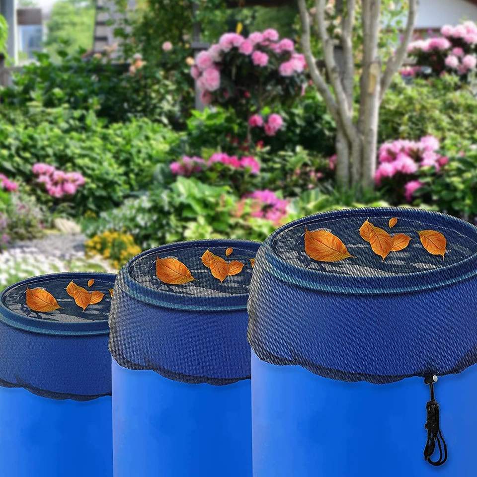Cubiertas de barril de lluvia con malla de poliéster con cordón para desechos de hojas Espacios al aire libre Cubierta de malla de barril de lluvia Juego de cubiertas de patio