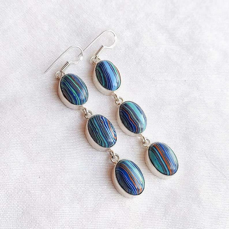 Pendientes Colgantes de Piedras Multicolores de Calcedonia Arcoíris, Alambre de Plata 925, Joyería Boho Hecha a Mano, Regalo de Piedras Preciosas Coloridas para Ella
