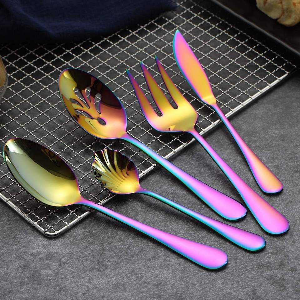 Juego de cubiertos de acero inoxidable con revestimiento de PVD y acabado esmaltado de Color arcoíris, cuchara ecológica para sopa y arroz