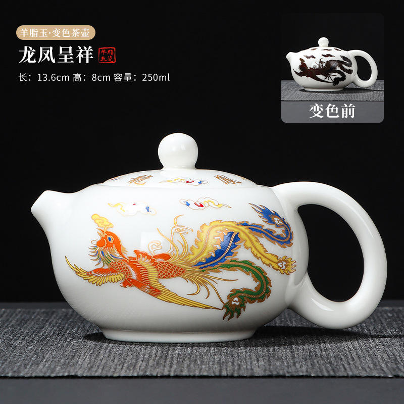 Tetera de Dragón Arcoíris y Fénix, Tetera de Kung Fu, Tetera de Porcelana de Jade con Canto de Fénix