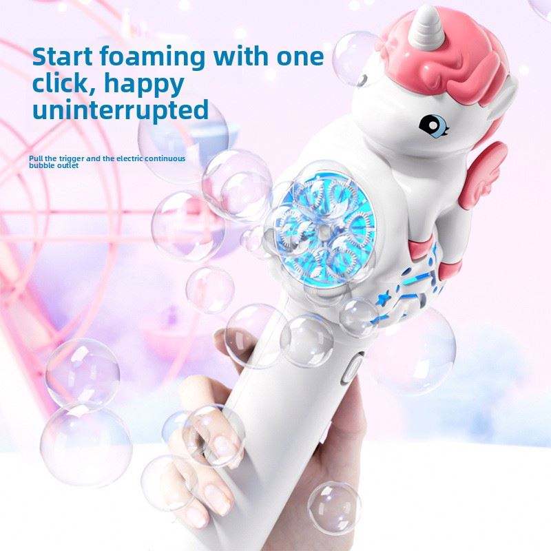 Caballo Arcoíris, Máquina de Burbujas Eléctrica Automática de Plástico, Juguete de Burbujas con Luz para Niños, Diversión al Aire Libre con Material ABS