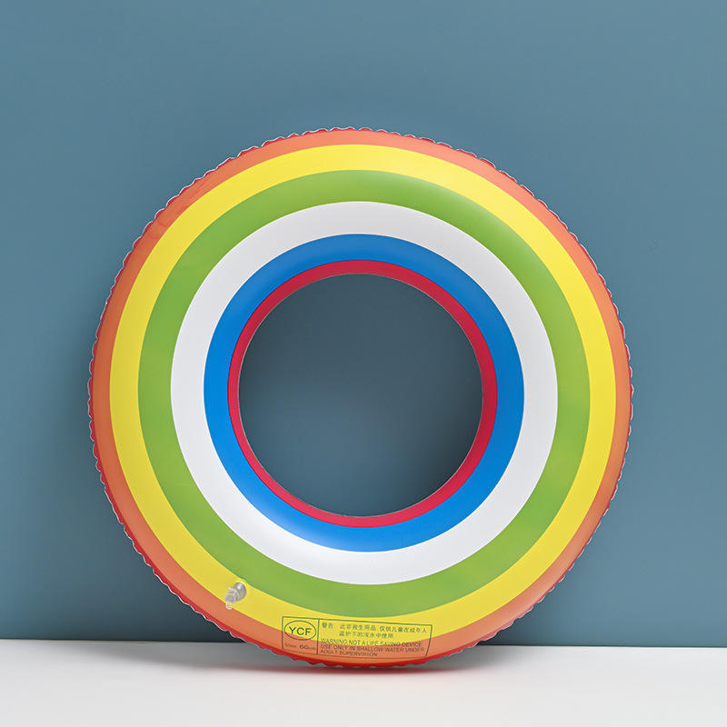 Anillo de natación inflable arcoíris para niños de 60-100 cm, equipo de juego de doble capa engrosado