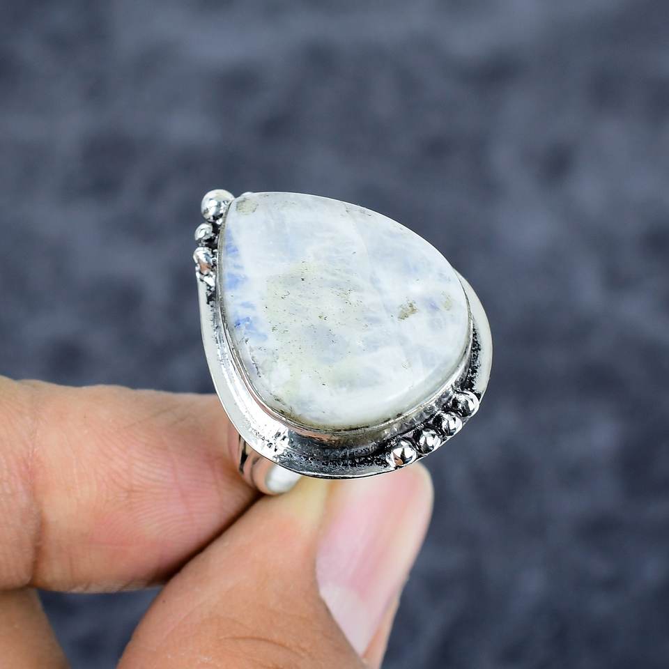 Anillo de Piedra Lunar Arcoíris en Plata de Ley 925 con Engaste de Bisel en Forma de Pera, Hecho a Mano, Estilo Bohemio, para Bodas, para Hombre y Mujer, Delicado, para el Día de Acción de Gracias
