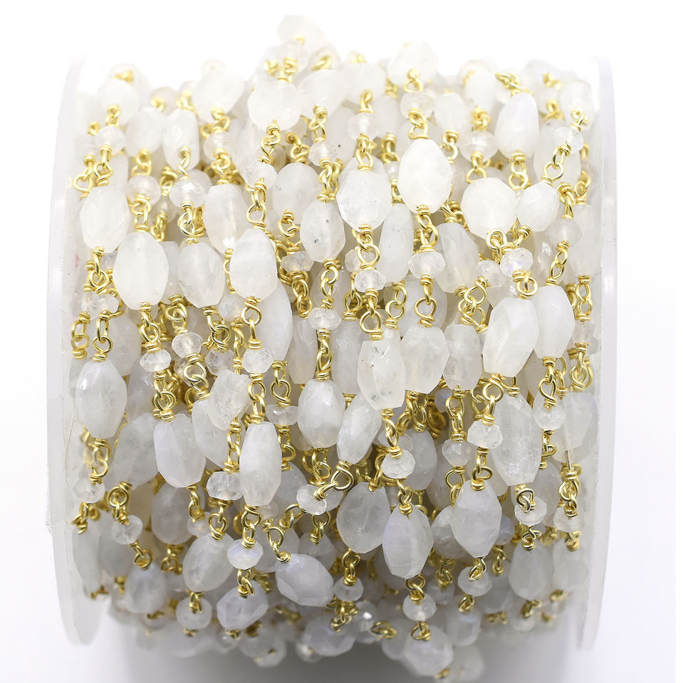 Product Name:Rainbow Moonstone Gold Plated Sterling Silver Rosary Wire Wrap Chain