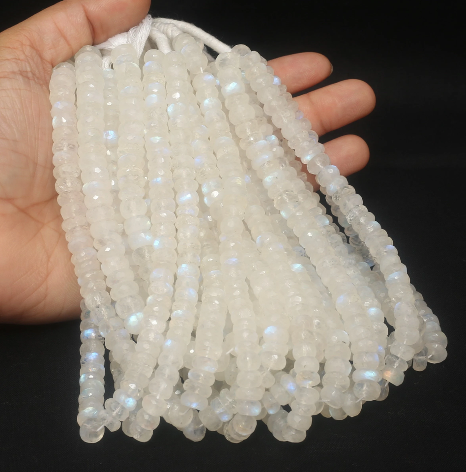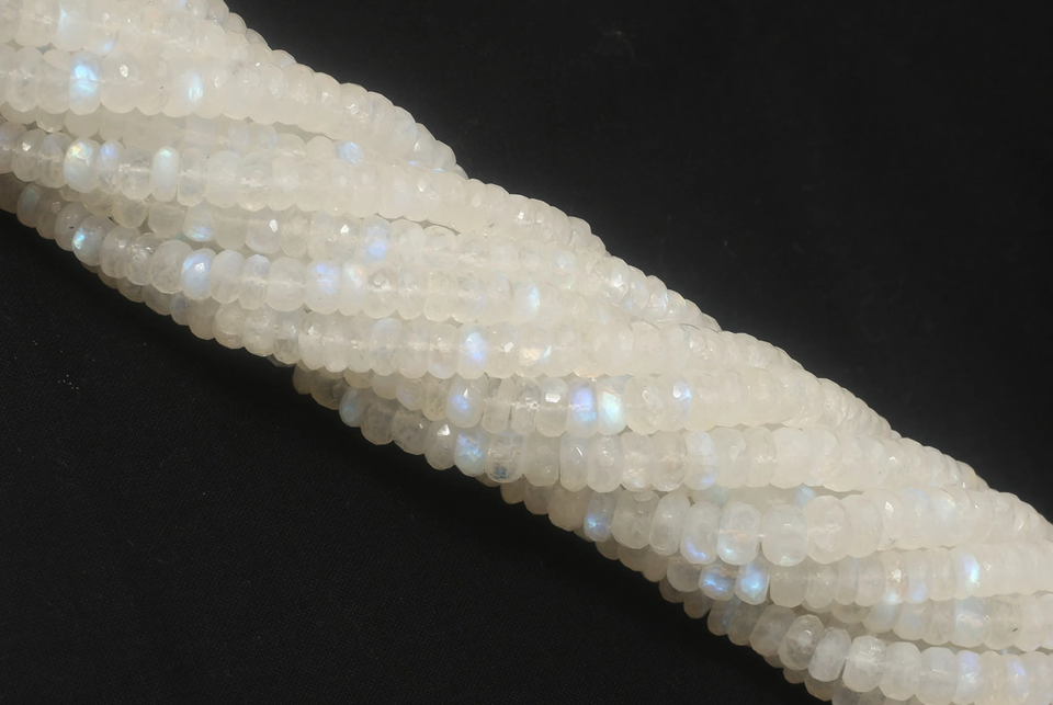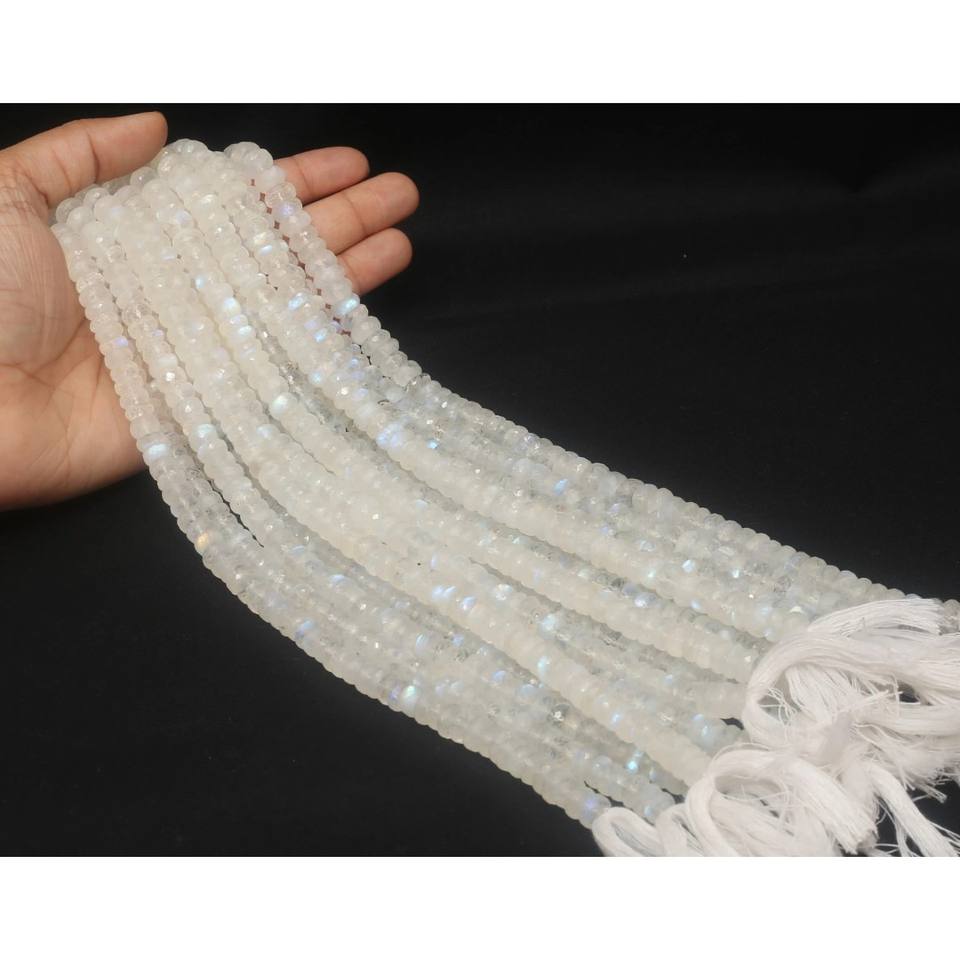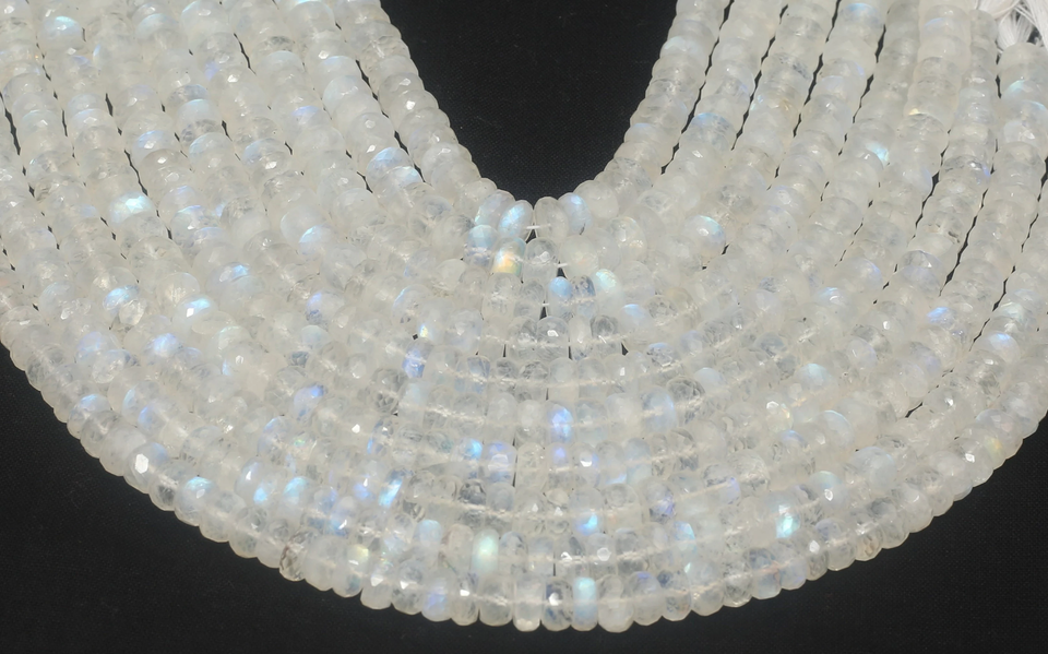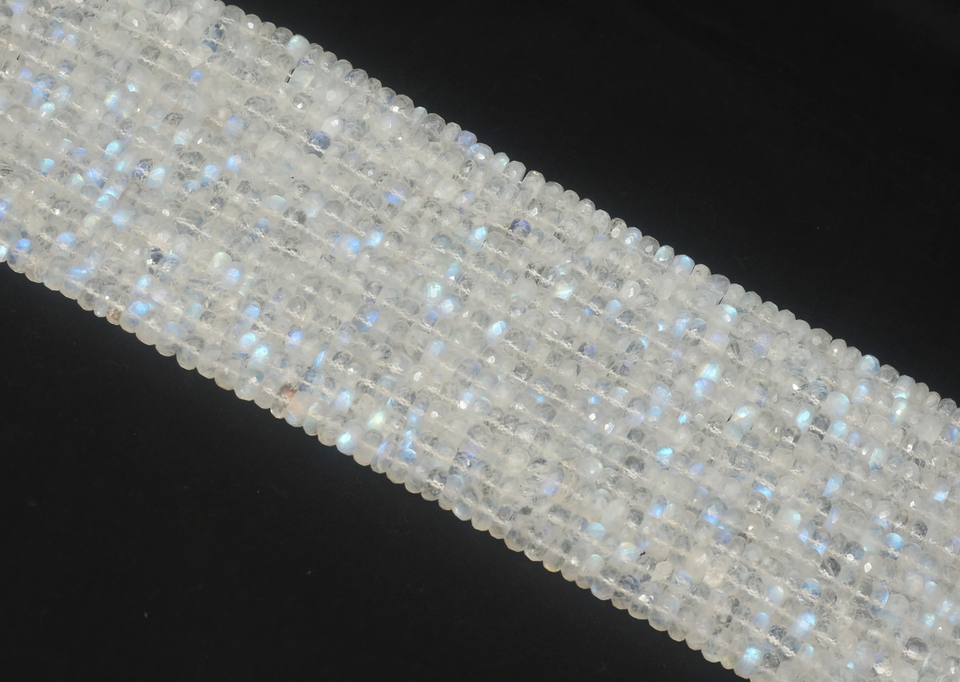 Piedras Preciosas de Piedra Lunar Arcoíris Facetadas en Forma de Rondelle de 4 mm, Color Blanco, Naturales, Brillantes, Certificadas por Terceros para la Fabricación de Joyas