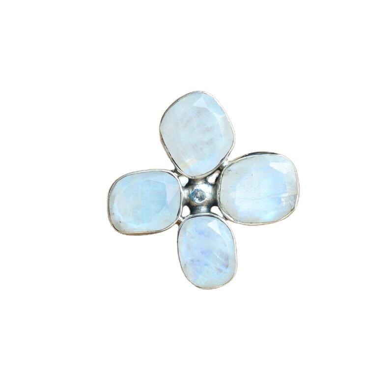 Piedra de Luna Arcoíris Natural, Chapado en Oro Rosa sobre Plata 925 Certificada, Engaste de Garra y Bisel con Forma de Flor Elegante, de Moda