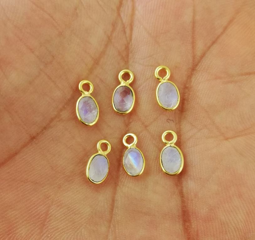 Rainbow Moonstone Gemstone Pendant 4x6mm Oval Tiny Shape Rodio y Gold Vermeil Bisel Charms