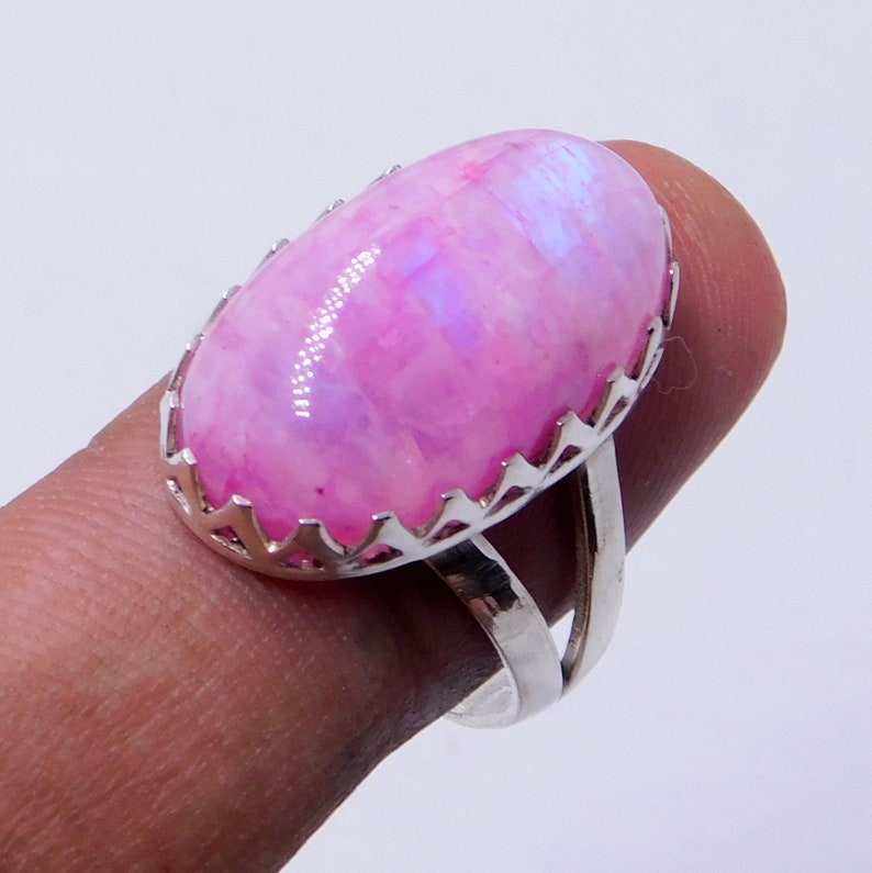 Anillo de plata con piedra lunar arcoíris para mujer, con múltiples cortes princesa, natural, blanco, tratado térmicamente, efecto estrella, certificado por terceros, perfecto.