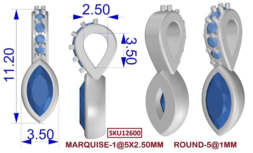 Tamaño de la Piedra:Marquise L- 5 MM, A- 2.5 MM, Zircón Redondo- 1 MM