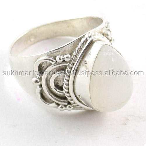 Anillos de piedra lunar de arcoíris, joyería de plata de ley 925, joyería India al por mayor