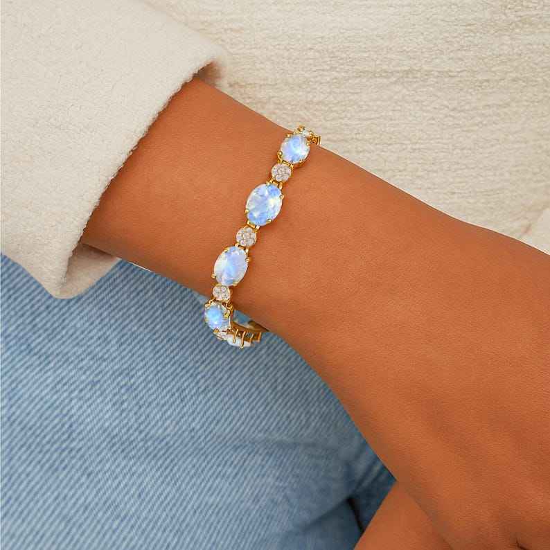 Palabra clave:White Moonstone oval Stone Tenis Pulsera