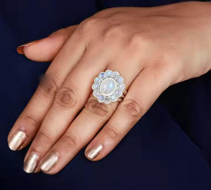 Arco Iris piedra lunar piedra diseño único 925 anillo de plata esterlina mejor boda romántica fiesta aniversario regalo para mujeres
