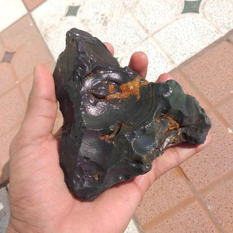 Palabra clave:Arco Iris natural negro obsidiana áspera piedra al por mayor de piedras preciosas