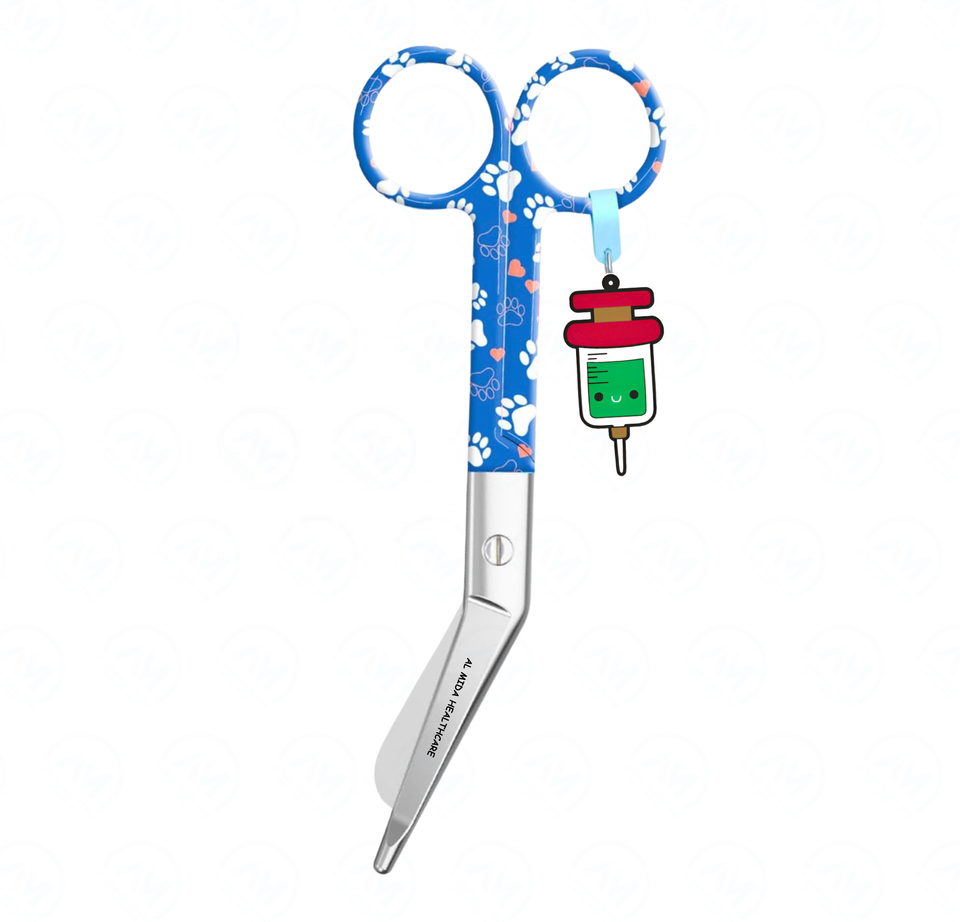 Nombre del producto:Tijera de vendaje de impresión arco iris con encanto de jeringa