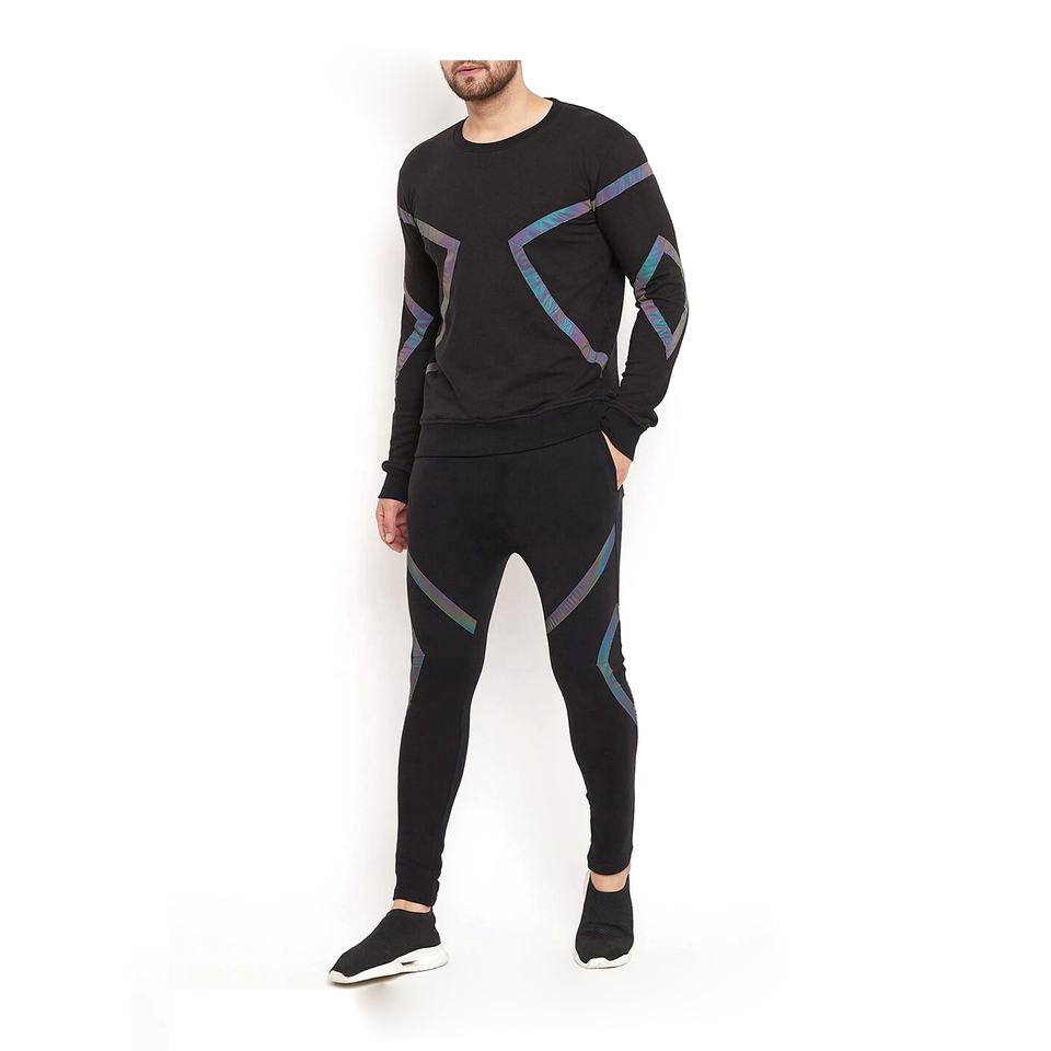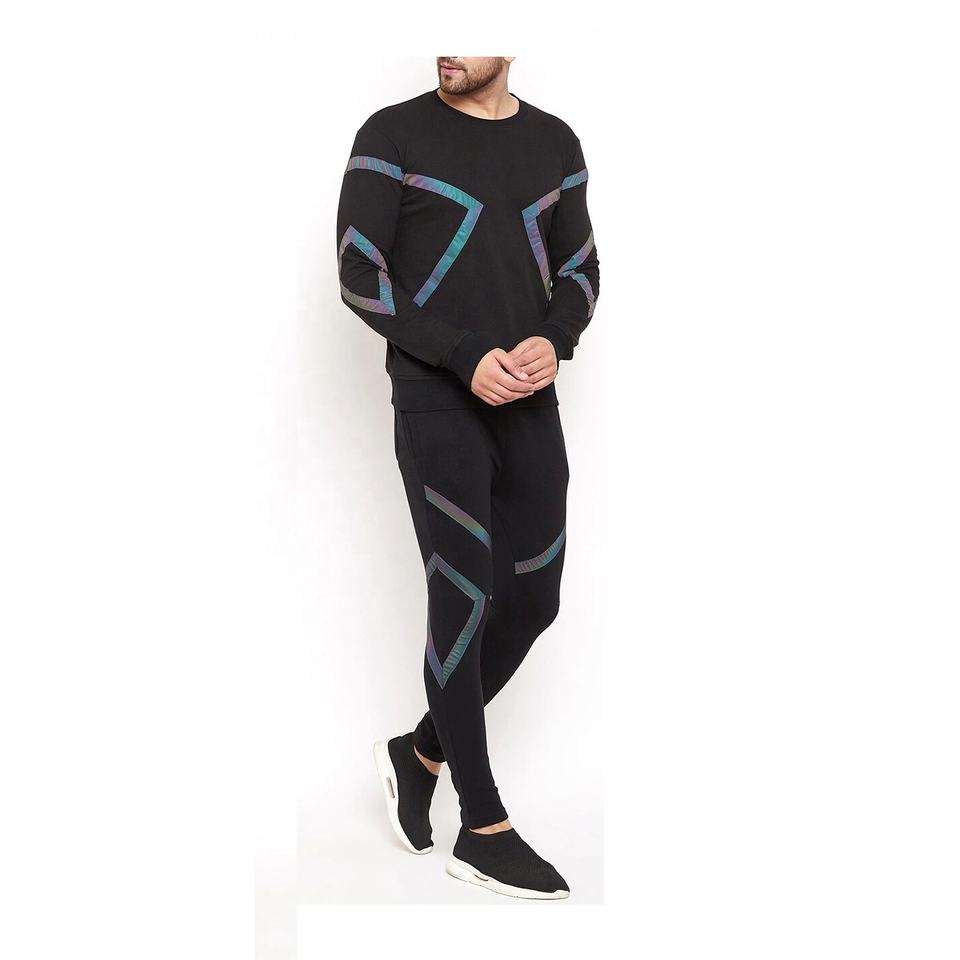 Chándal de hombre con cinta reflectante arcoíris con cuello redondo puños acanalados y dobladillo personalizado al por mayor chándal unisex