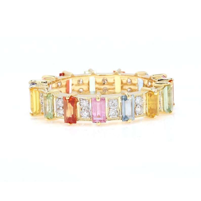 Palabra clave:Anillo de Banda de Eternidad de Zafiro Arcoíris con Piedras Preciosas Coloridas, Joyería de Lujo