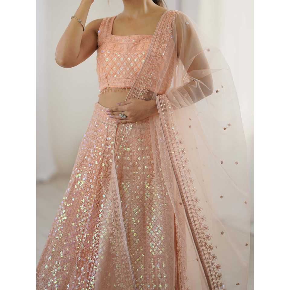 Rainbow Sequins & Dori Work Lehenga Choli Performance Wear para fiestas