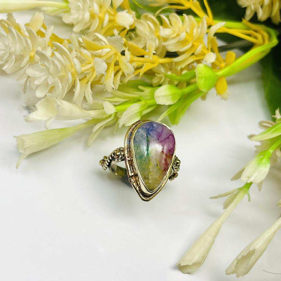 Arco Iris Solar cuarzo Druzy anillo 925 anillo de plata esterlina anillos ajustables joyería hecha a mano anillo de piedras preciosas originales plata
