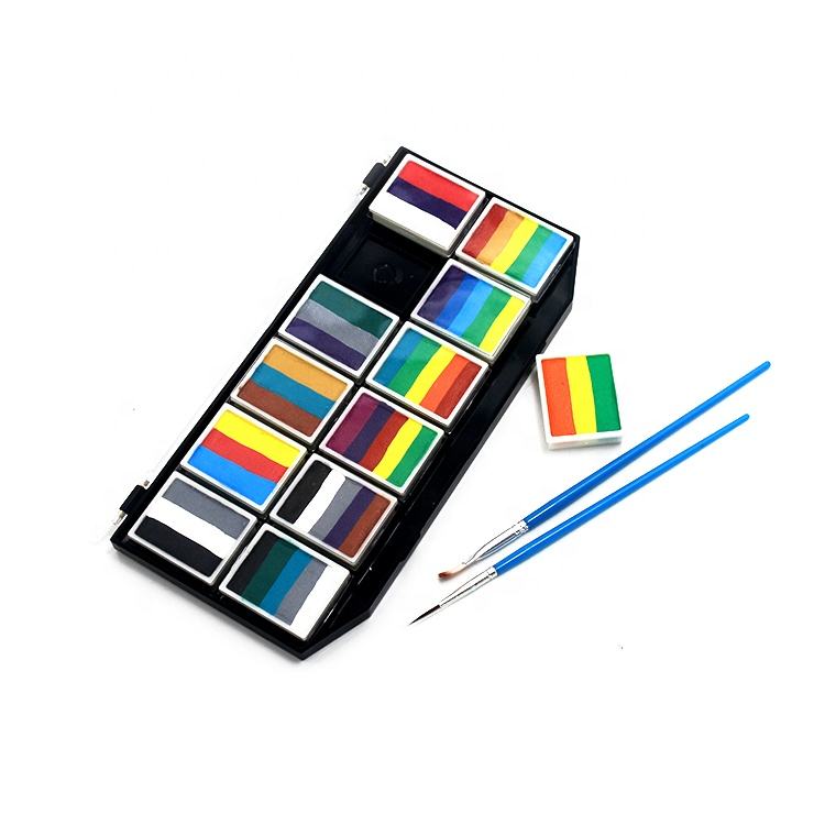 Paleta de Maquillaje Arcoíris en Pastilla para Pinta Caritas a Base de Agua Kit de Pintura Corporal para Carnaval, Fiestas y Halloween