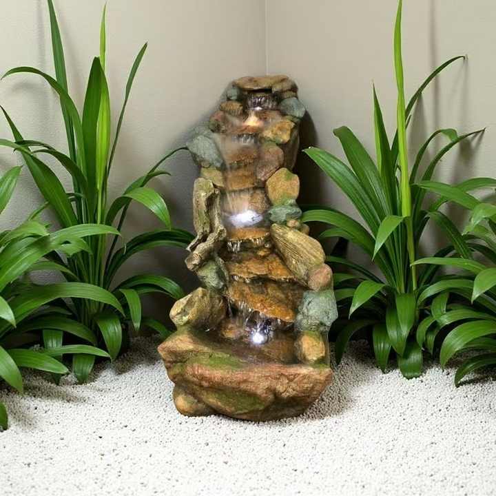 Fuente de Agua Grande para Exteriores Rainforest Rock, Duradera, con Luces LED de Gota de Agua para Jardín, Relajación y Meditación, Material de Resina