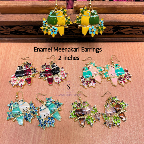 Rajasthani Style Tota Mena Designer Jhumkaas Earrings Enamel Work Drop Dangle Birds Earrings for Wedding Party Favors Earrings