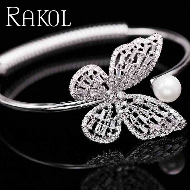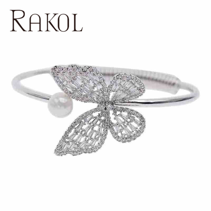 Rakol ZPB1121 Diseño único Forma de mariposa Perla de agua dulce Cz Cristal Circón Piedra Joyería de moda Pulsera
