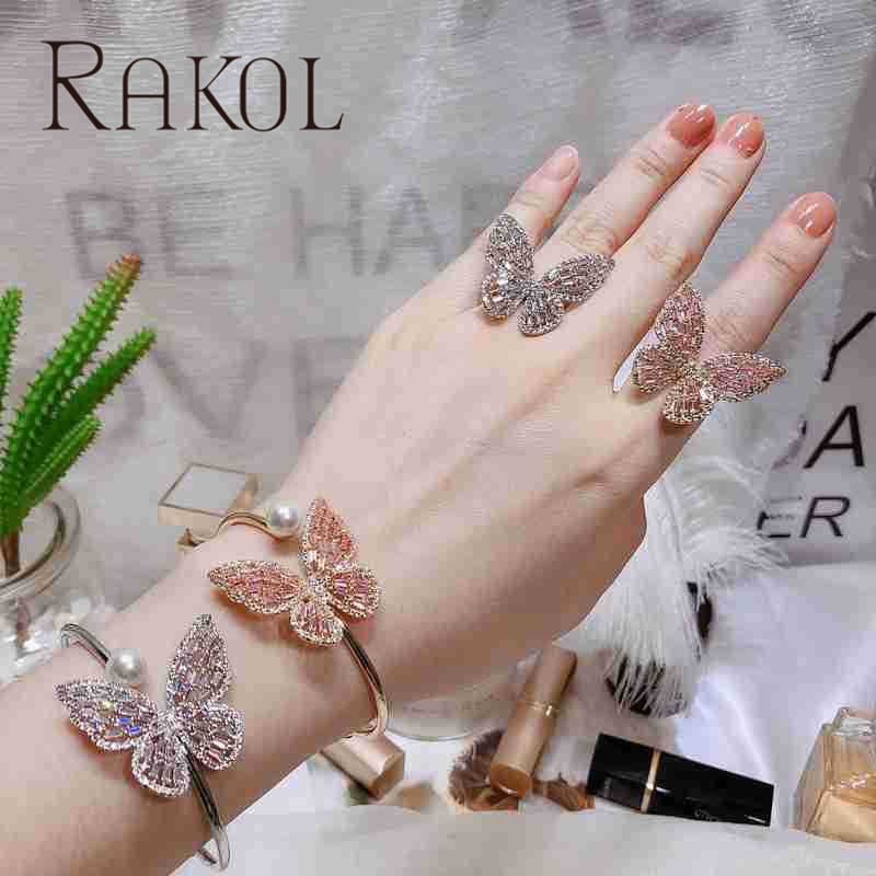Pulsera de mariposa Rakol con circonita cúbica, pulsera de mariposa de cristal