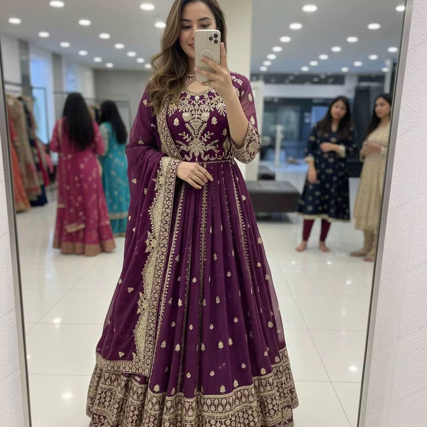 Heavy Fox Georgette With 5mm sequence Emrodery WorkMaterial