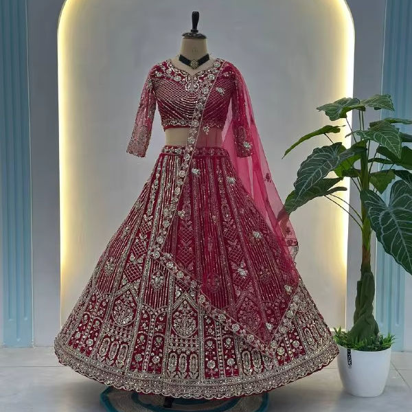 Lehenga de Mujer Ramdev Trading con Bordado Intrincado, Tonos Ricos, Artesanía Atemporal, Materiales Reciclados Tradicionales, Lujo y Elegancia