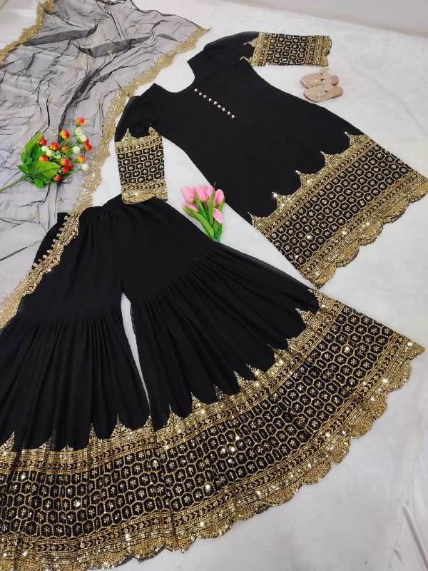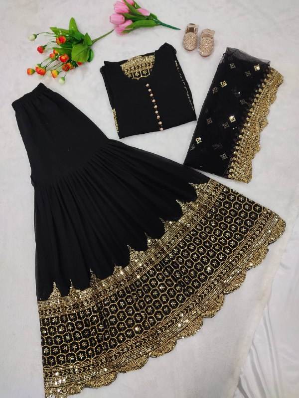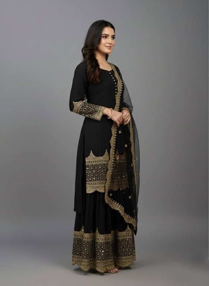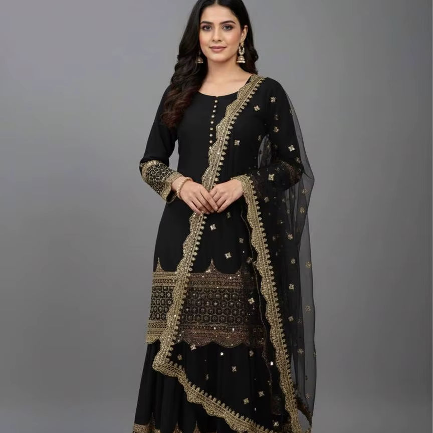 Conjunto Sharara Moderno para Mujer de Ramdev Trading, Top de Manga Larga, Dupatta Bordada, Seda de Secado Rápido, Ropa Étnica para Fiestas Diwali
