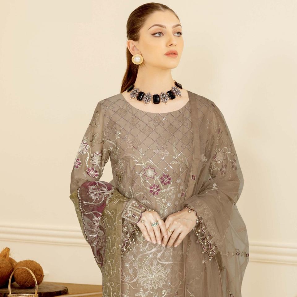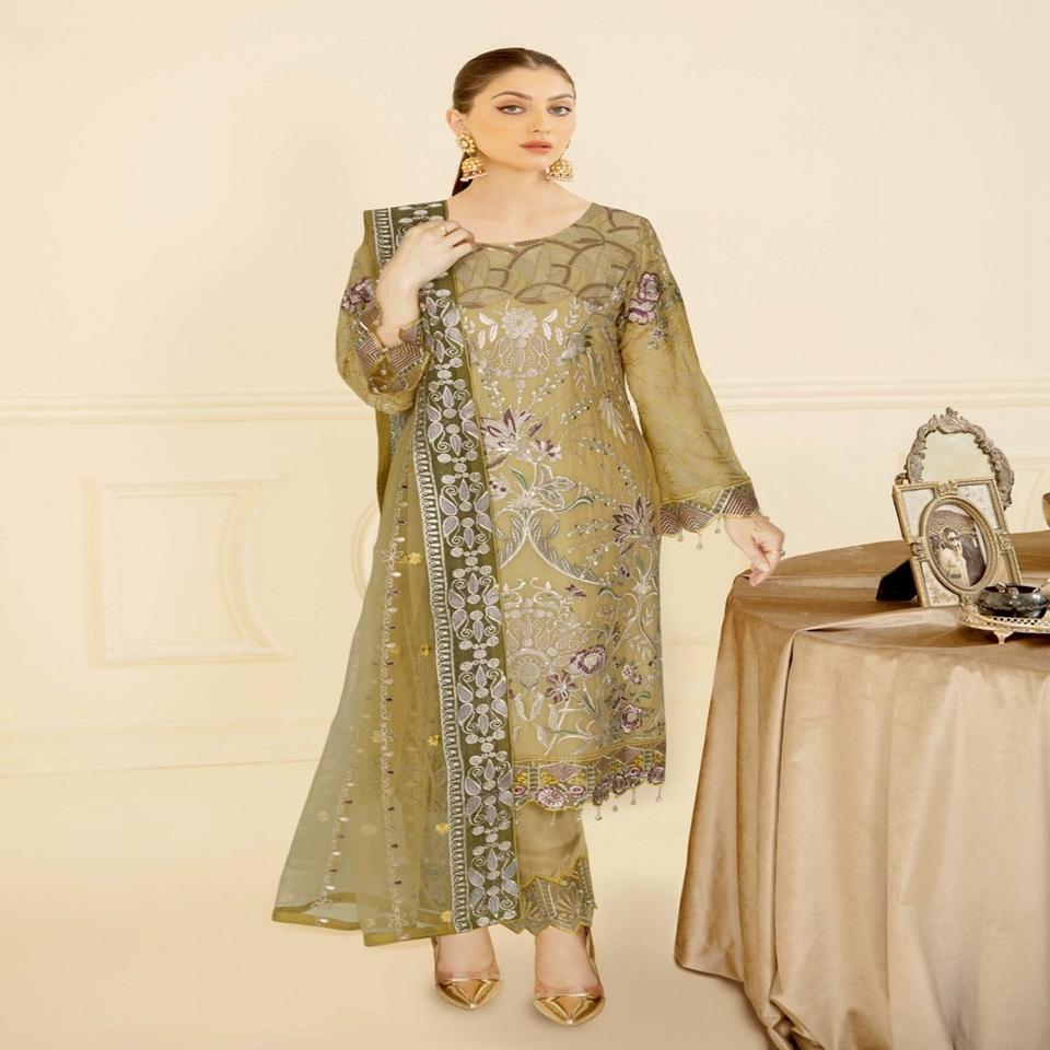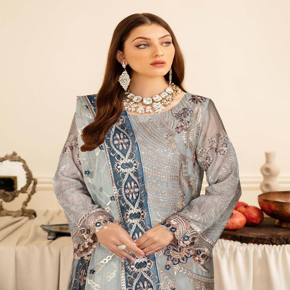 Ramsha Vol. Colección de gasa de 3 piezas, vestidos de festival de boda paquistaníes indios para mujeres y niñas para bodas y fiestas