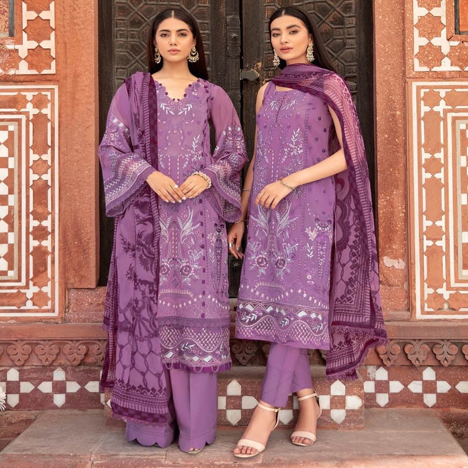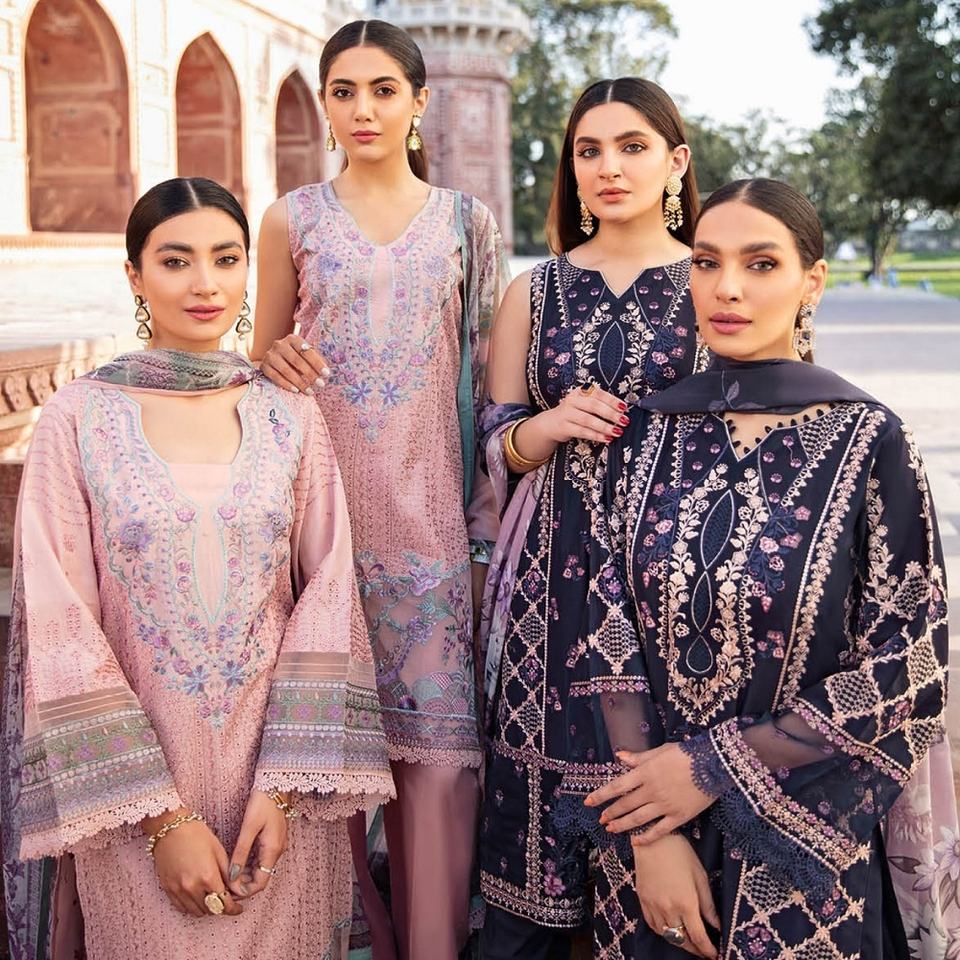 Ramsha Volume ANDAAZ's Bellamente bordado Heavy Lawn Trajes indios y paquistaníes de 3 piezas para adultos Casual & Party Wear