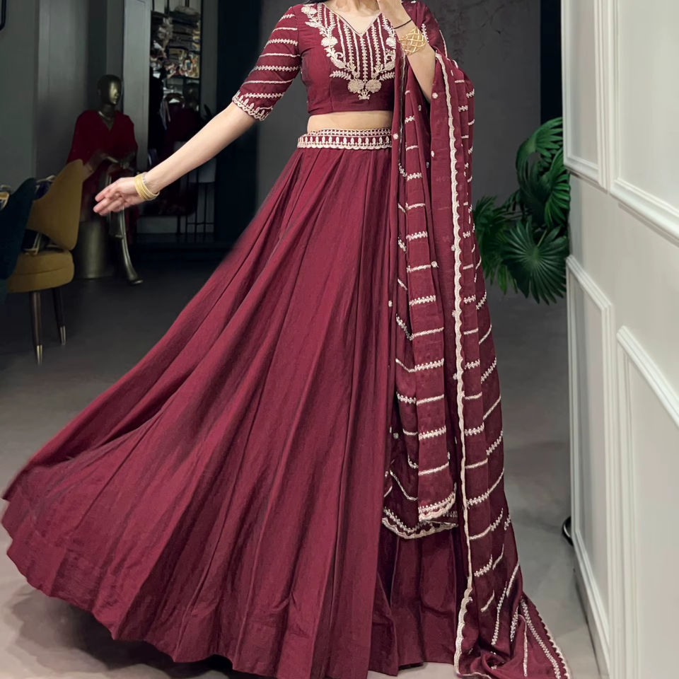 Lehenga Choli con Bordado de Lentejuelas y Hilos Rangoli Crush